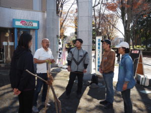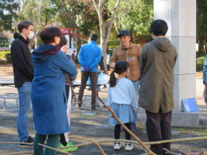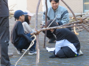 13:00 加藤先生よりワークショップの内容説明 および強度を保てる材料の組み方、紐の結び方、安全指導の話、グループ分け